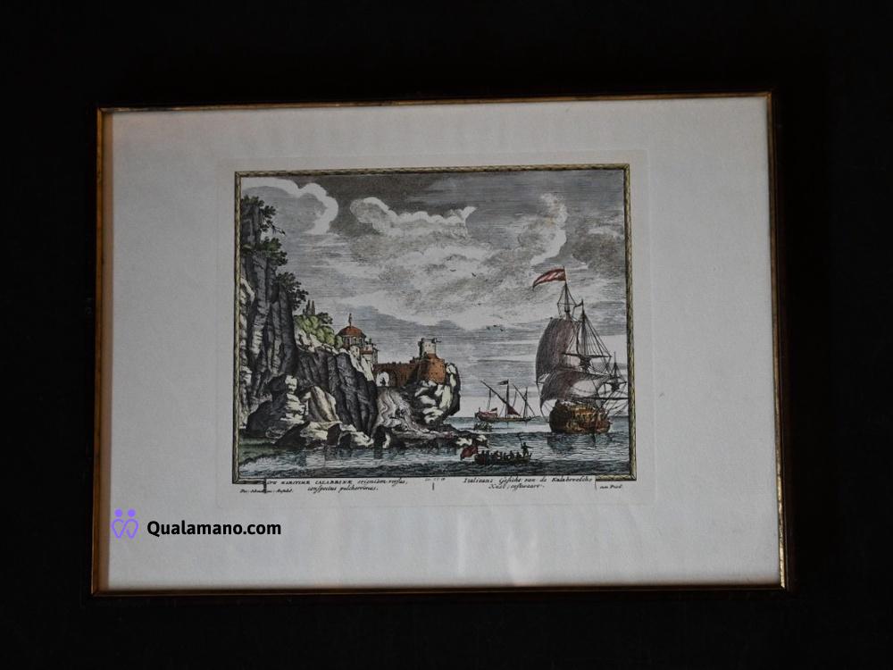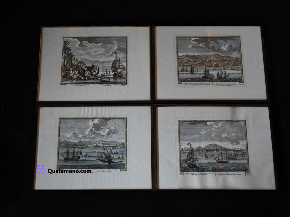 N. 4 stampe d’epoca incorniciate con vedute costiere e marine a colori. Dimensioni con cornice 45x33cm