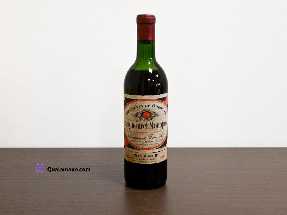 N.1 Bottiglia di vino rosso francese, denominazione Bordeaux, 75 cl, vol 11%. Etichetta in stile classico con indicazioni in francese e italiano.
