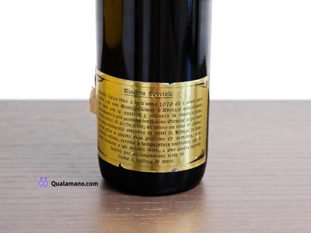 N. 1 Bottiglia di vino rosso Riserva Speciale Montepulciano in Abruzzo Cerasuolo a Denominazione di Origine Controllata, prodotto nel 1979. 72cl