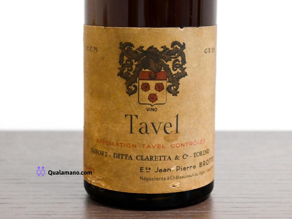 N.1 Bottiglia di raro vino rosato della rinomata appellation Tavel, prodotto nel 1974 da Jean Pierre Brotte. 75cl, vol 13%.