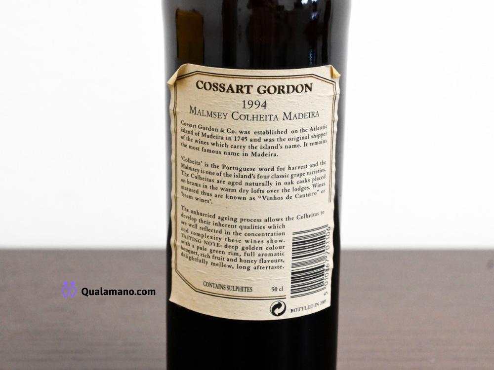 N. 1 Bottiglia di vino liquoroso portoghese da uve Malvasia, annata 1994, Cossart Gordon Colheita Malmsey Madeira 1994, 50 cl, vol. 19%.